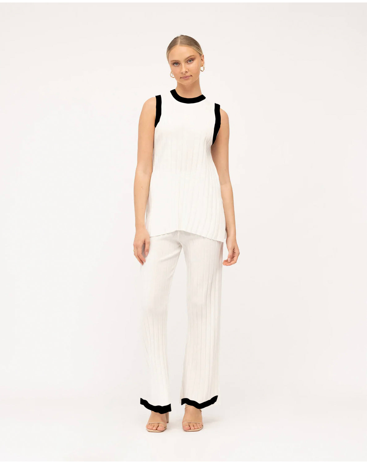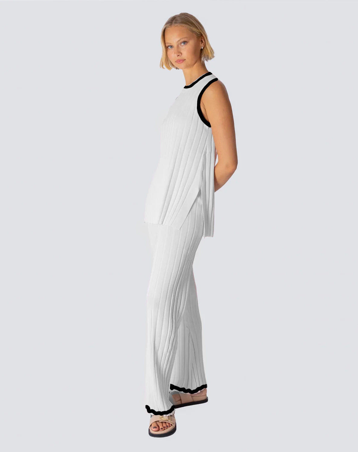 Venus Set | wide rib contrast Pant Set -white/black- By Frankie